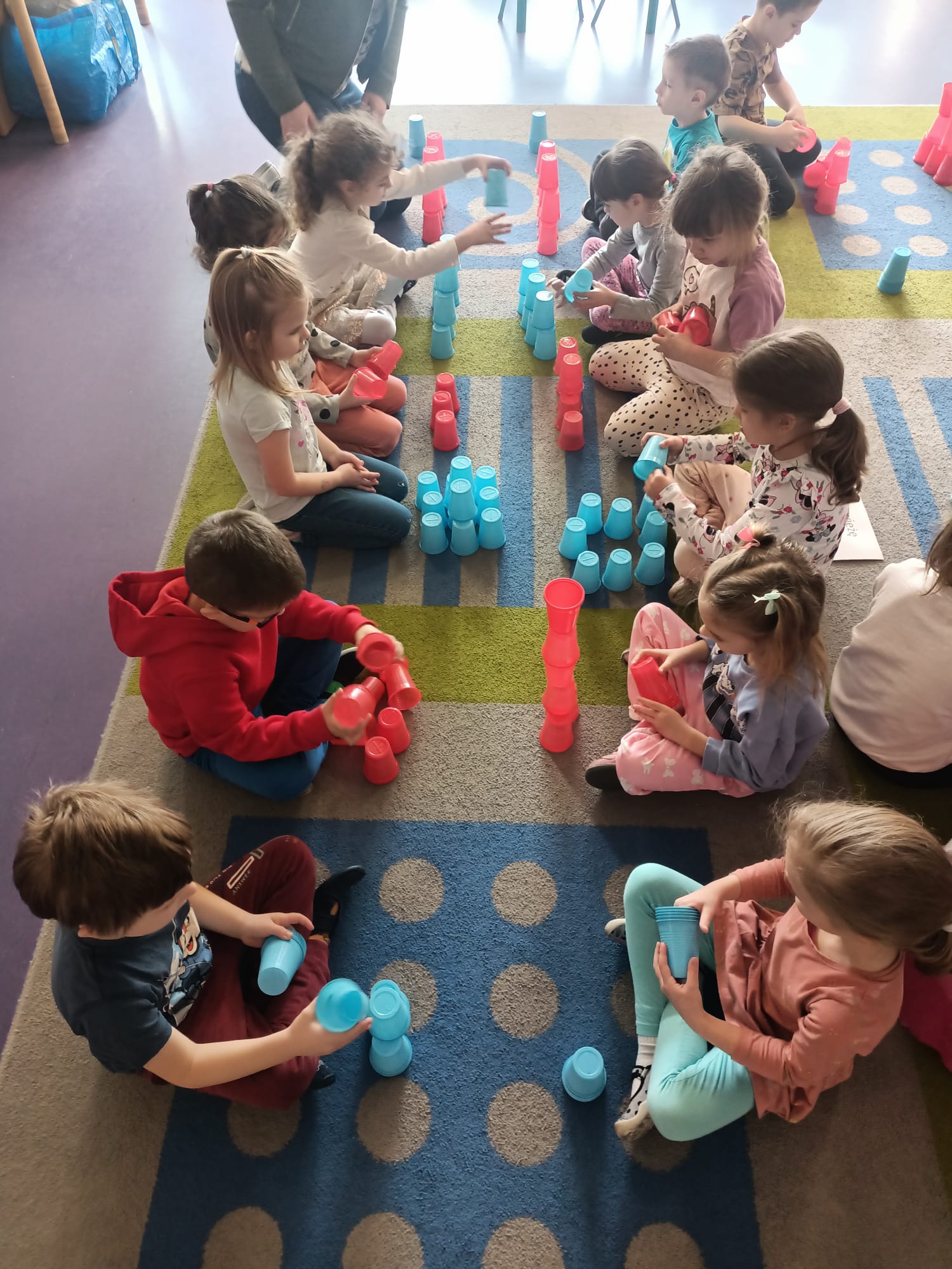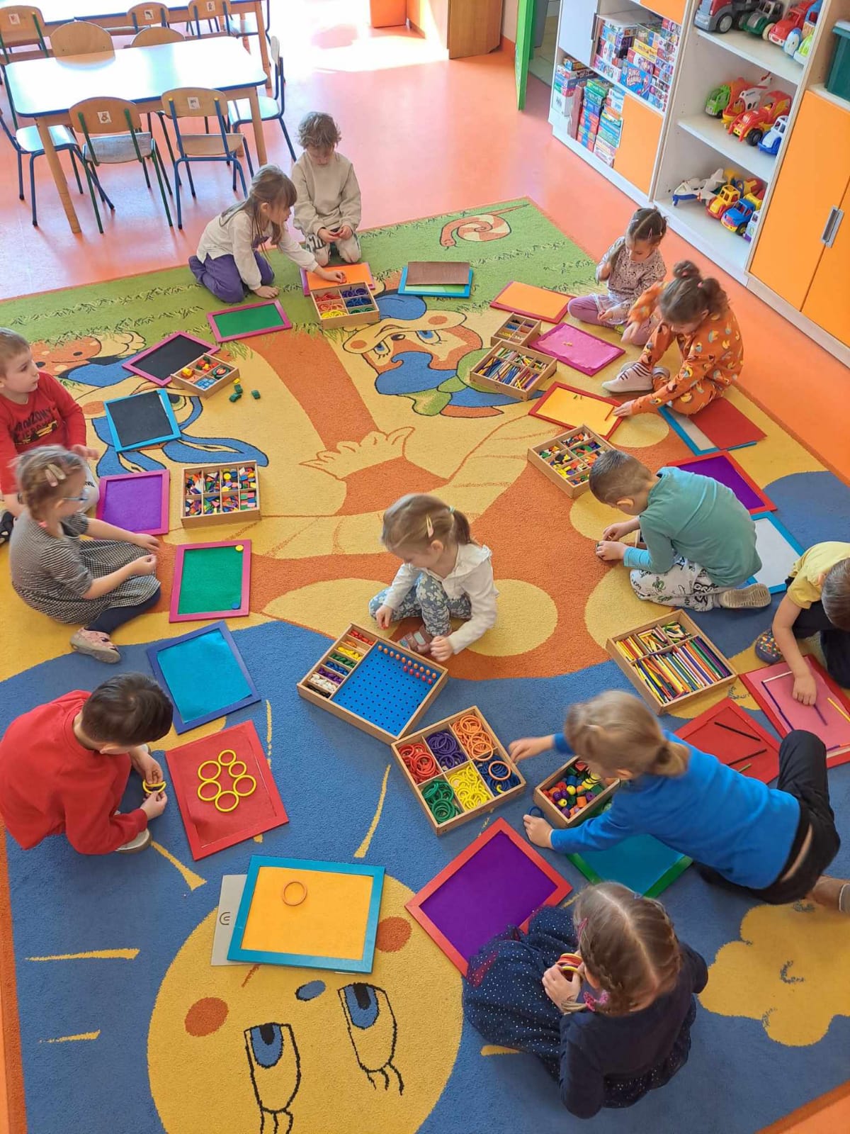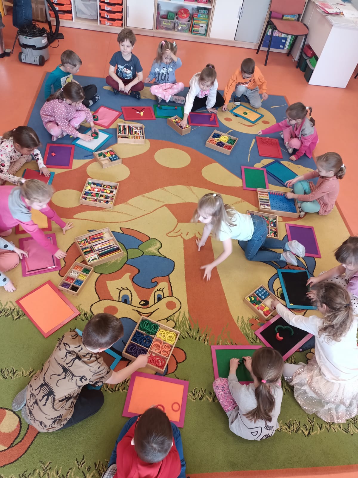 Dzisiaj, w ramach Dnia Matematyki nasze przedszkolaki pracowały metodą stacji – odwiedziły wszystkie sale przedszkolne, gdzie poszczególne grupy przygotowały różnorodne zadania matematyczne, m.in. rytmy, kodowanie na macie oraz z kolorowymi kubeczkami, cyferkowe wysypywanki, zabawy z Darami Froebla, zabawy ruchowe, przeliczanie, domino i wiele, wiele innych…