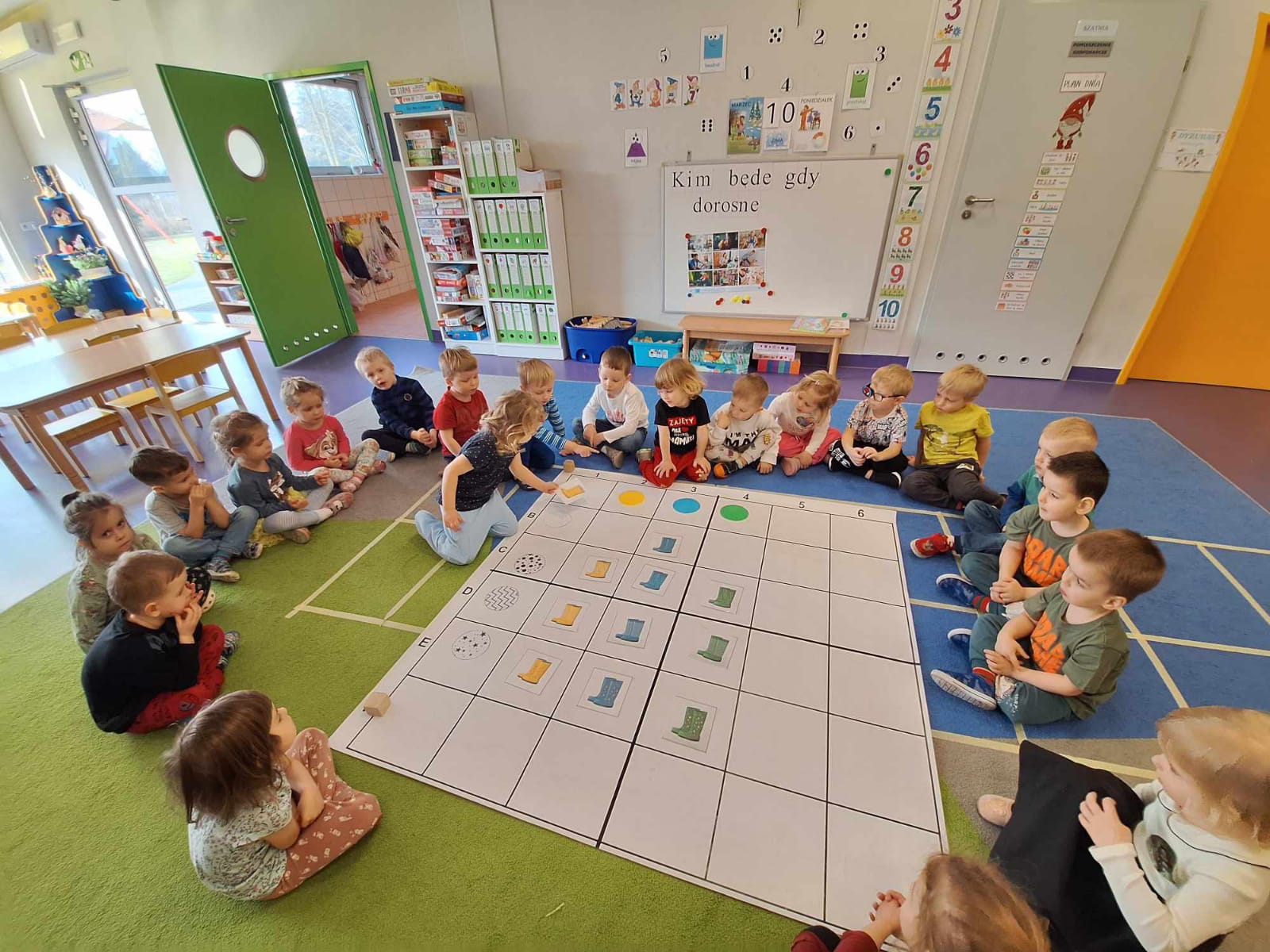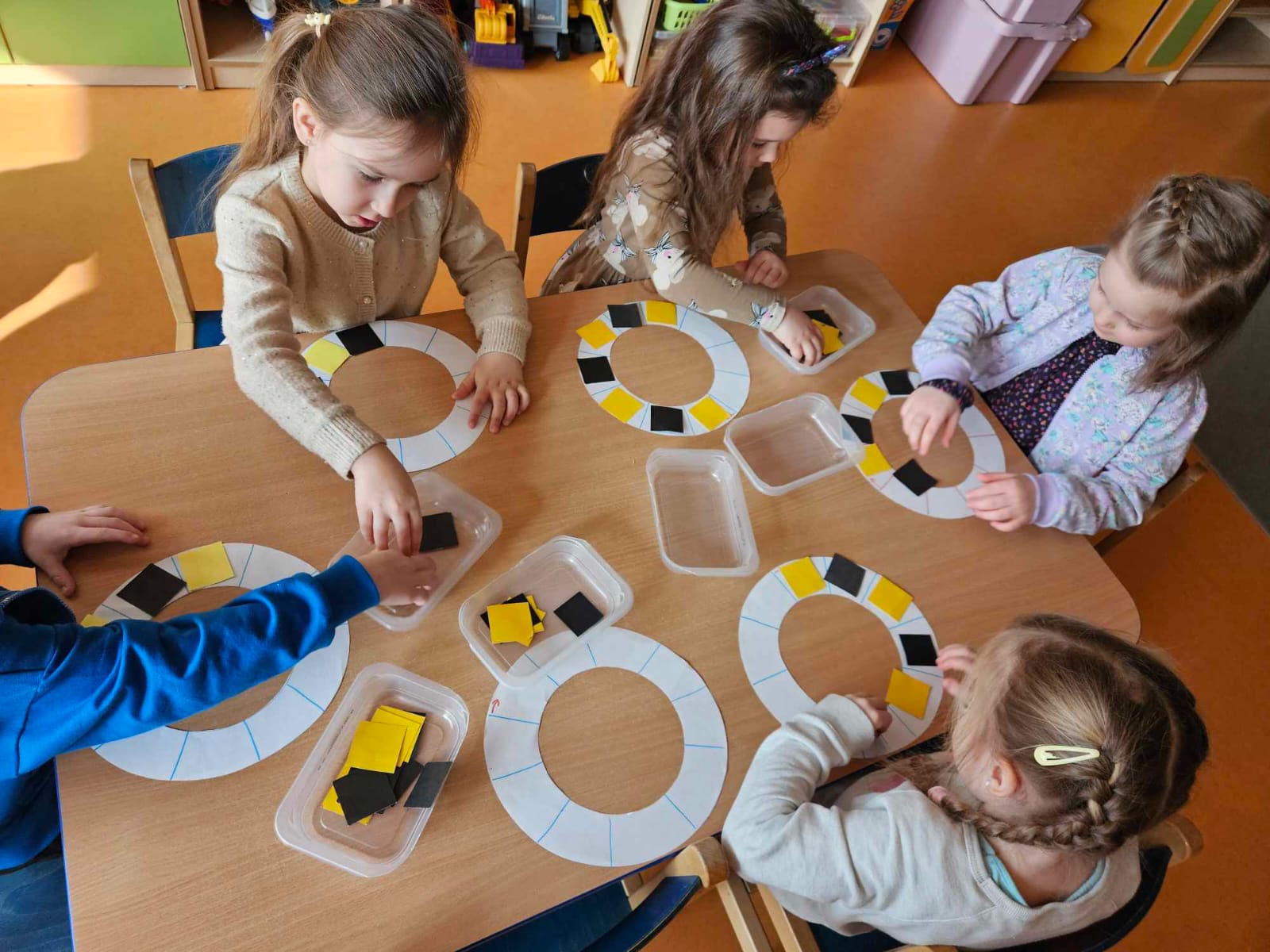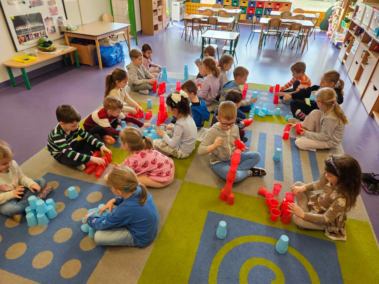 Dzisiaj, w ramach Dnia Matematyki nasze przedszkolaki pracowały metodą stacji – odwiedziły wszystkie sale przedszkolne, gdzie poszczególne grupy przygotowały różnorodne zadania matematyczne, m.in. rytmy, kodowanie na macie oraz z kolorowymi kubeczkami, cyferkowe wysypywanki, zabawy z Darami Froebla, zabawy ruchowe, przeliczanie, domino i wiele, wiele innych…
