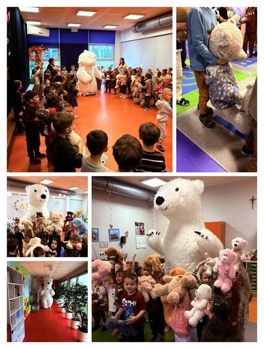 Na dzieci czekała również wyjątkowa atrakcję! Rada Rodziców naszego przedszkola przygotowała wspaniałą niespodziankę – wizytę wielkiego, uśmiechniętego Misia Polarnego.