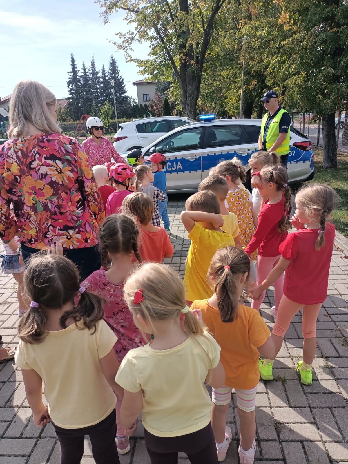 Dzięki współpracy z @Komenda Powiatowa Policji w Pruszkowie dzieci miały dziś okazję przećwiczyć bezpieczne przechodzenie przez pasy, a także zobaczyć jak wygląda samochód policyjny od wewnątrz 🚔🙂
