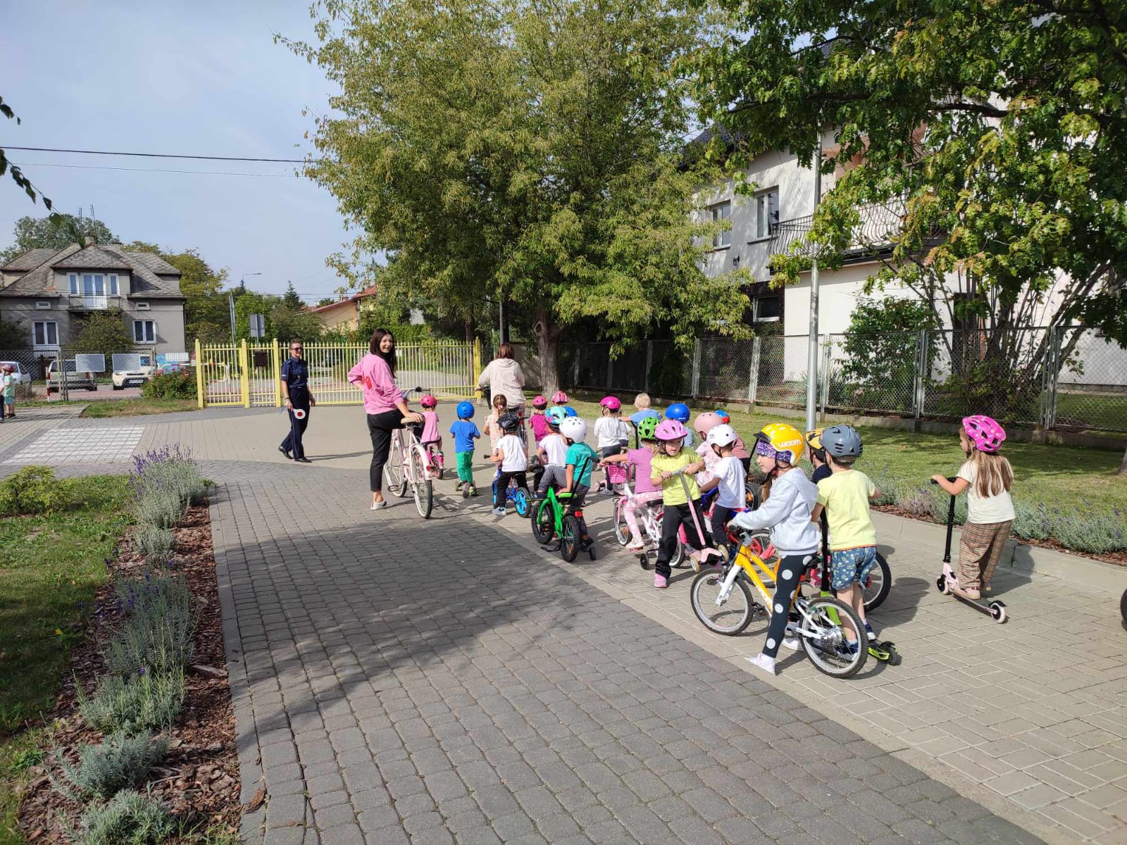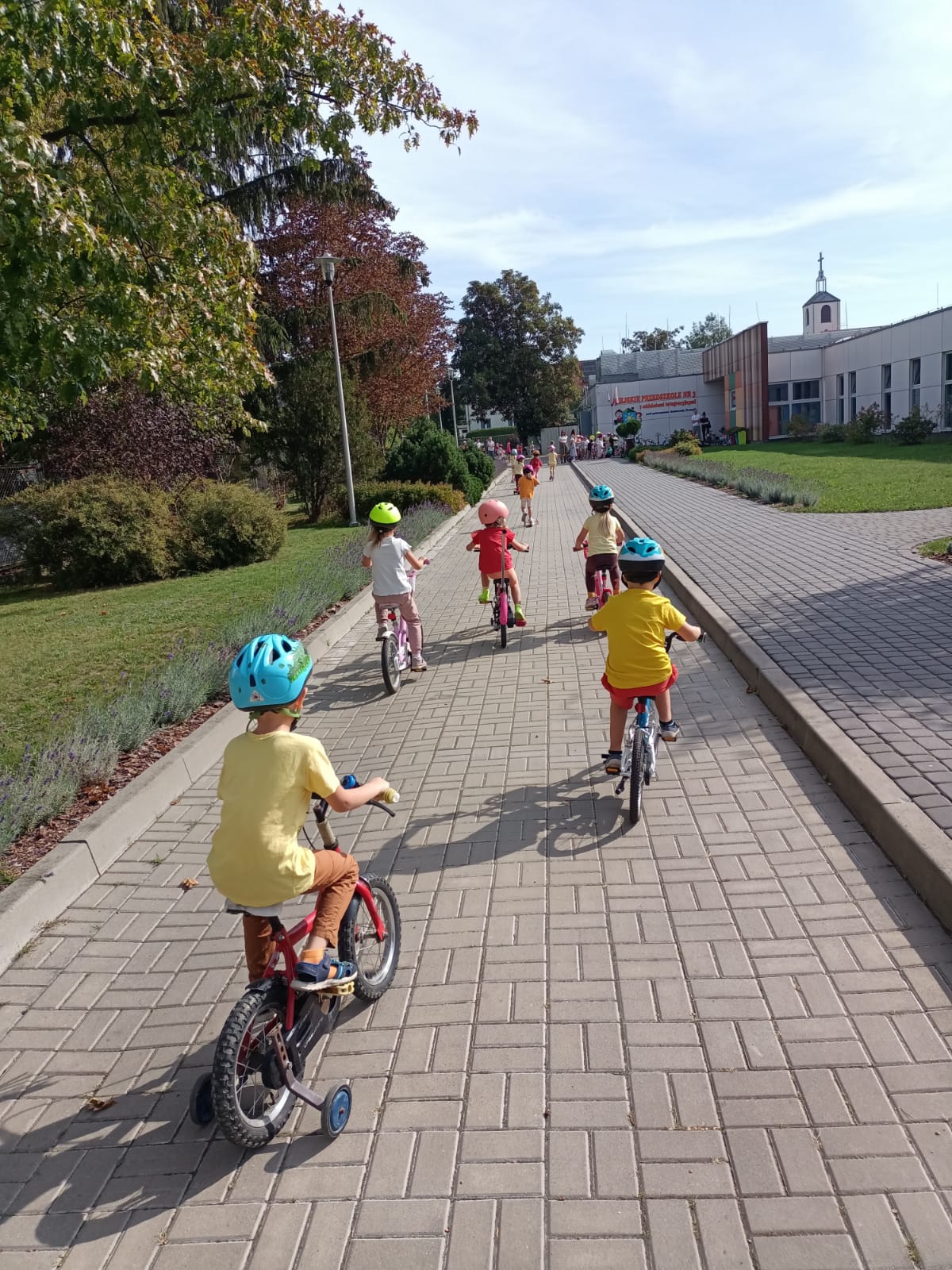 Na zakończenie wszystkie przedszkolaki w kaskach i na swoich pojazdach ochoczo przemierzały przedszkolny „deptak” 🙂
