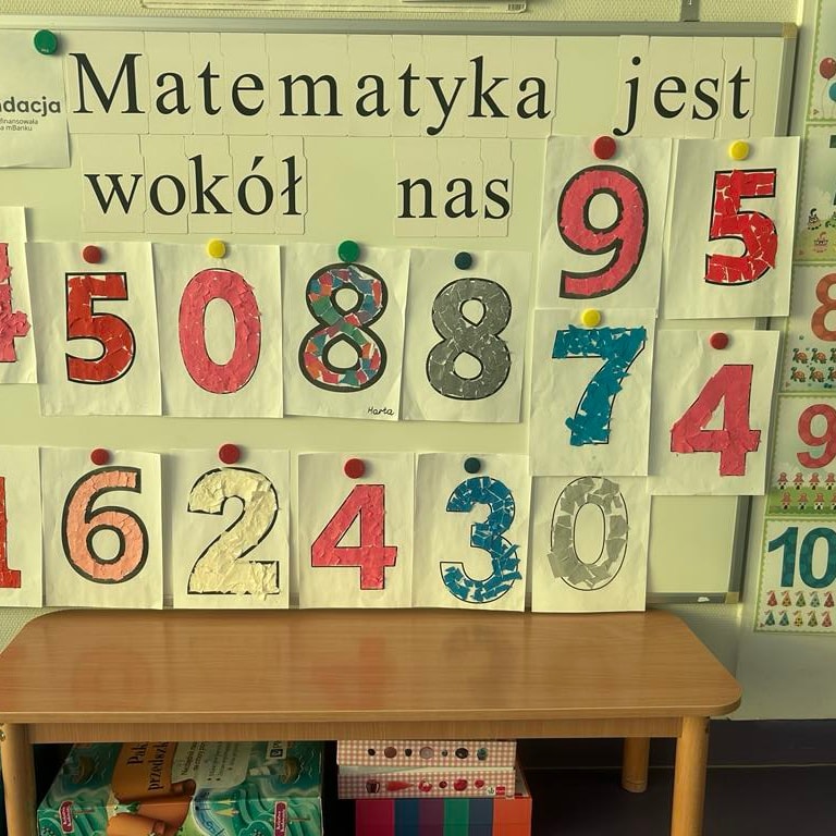 Na przełomie lutego i marca w Przedszkolu wszystkie grupy realizowały zajęcia metodą projektu edukacyjnego „Matematyka jest wokół nas”. Cele projektu edukacyjnego to;- budzenie zainteresowania matematyką poprzez: zabawy słowne, literackie, matematyczne, rytmiczne, słuchowe, plastyczne i techniczne- wzbogacanie słownika o pojęcia związane z matematyką,- rozwijanie myślenia przyczynowo – skutkowego, myślenia logicznego,- popularyzacja wiedzy i kultury matematycznej,- uzmysłowienie i rozwijanie powiązań matematyki z innymi naukami i dziedzinami życia,- ukazanie matematyki jako przedmiotu interdyscyplinarnego, obecnego praktycznie w każdym aspekcie codziennego życia, matematyki potrzebnej i użytecznej, ale również ciekawej i interesującej, gdzie jest miejsce na nieszablonowość i kreatywność, a także odkrywczość,- poznawanie otaczającego świata poprzez metodę samodzielnych doświadczeń,- prezentowanie zdobytej wiedzy i nowych umiejętności związanych z realizacją projektu,- rozwijanie twórczego myślenia, wyobraźni i kreatywności,- rozwijanie zainteresowań, zdolności, kompetencji matematycznych, poprzez – zastosowanie metod aktywizujących z uwzględnieniem indywidualnych potrzeb i zainteresowań dzieci.Przedszkolaki w trakcie projektu edukacyjnego doświadczały matematyki w różnorodnych sytuacjach edukacyjnych poszerzając swoją wiedzę, zdobywając nowe umiejętności. Zabawy było co nie miara