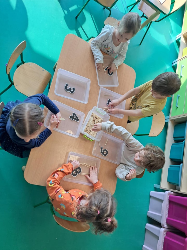 Dzieci miały możliwość tworzyć konstrukcje z różnorodnych klocków, figur geometrycznych i brył, stworzyły niejedno dzieło artystyczne, kreatywną pracę plastyczną czy techniczną. Przedszkolaki uczyły się matematycznych wyliczanek, rozwiązywały łamigłówki, mierzyły objętości i długości, ważyły.