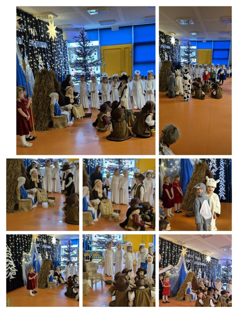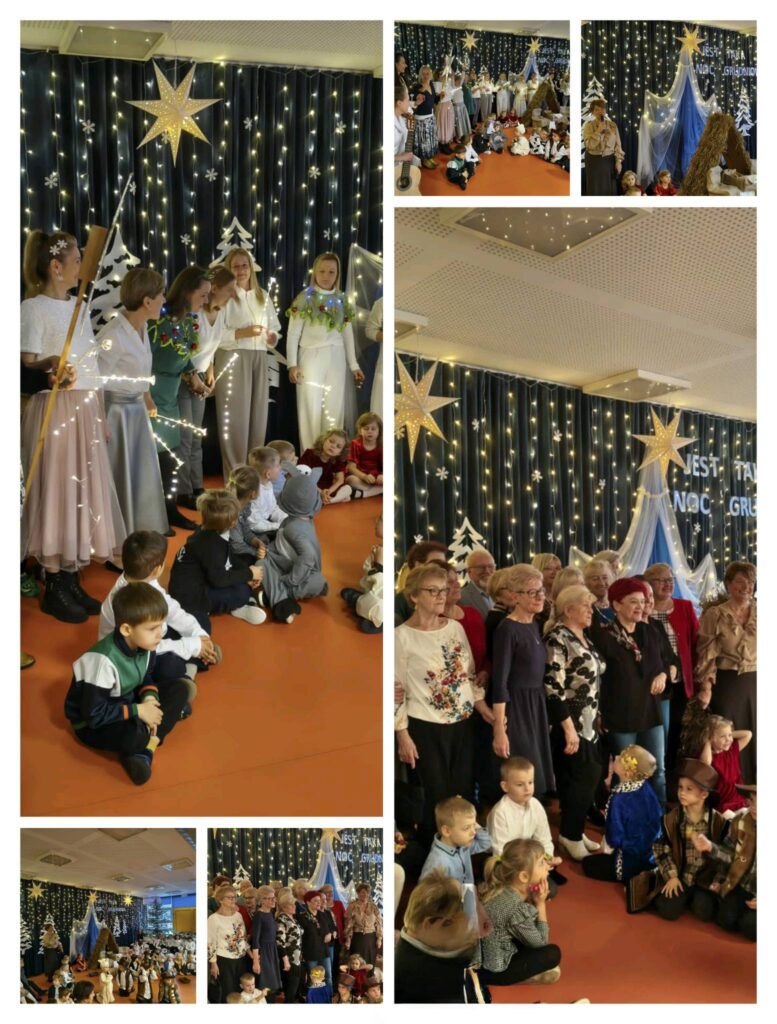 Świąteczne spotkanie kolędowe z Sympatykami Piastowskiego Klubu Seniora w naszym przedszkolu miało wyjątkowo ciepły i rodzinny charakter. Sala udekorowana była światełkami, papierowymi gwiazdami i choinkowymi ozdobami wykonanymi przez dzieci. Już od progu czuć było radosną atmosferę zbliżających się świąt.