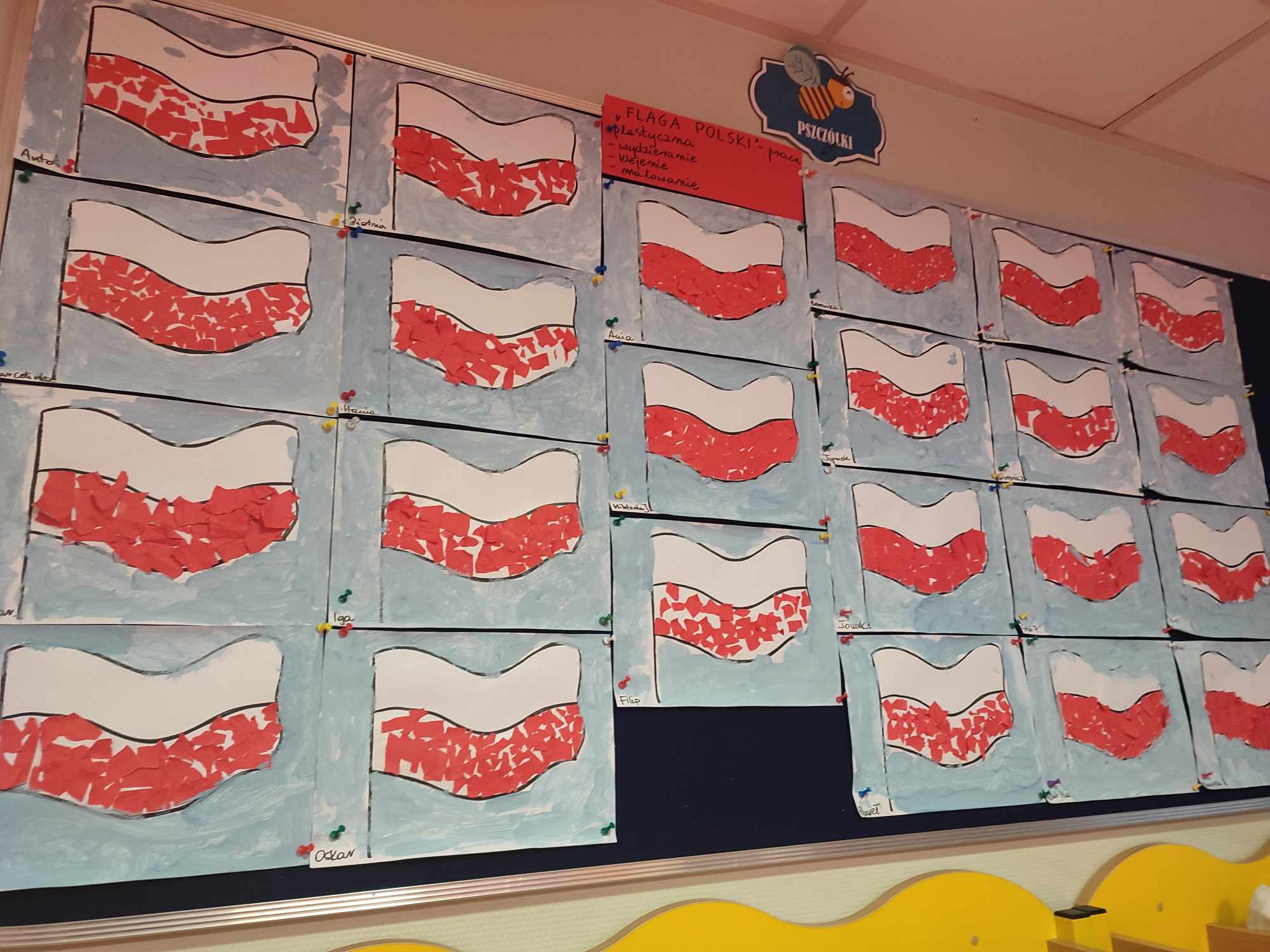 Grupa Pszczółki – flaga wyklejana bibułą