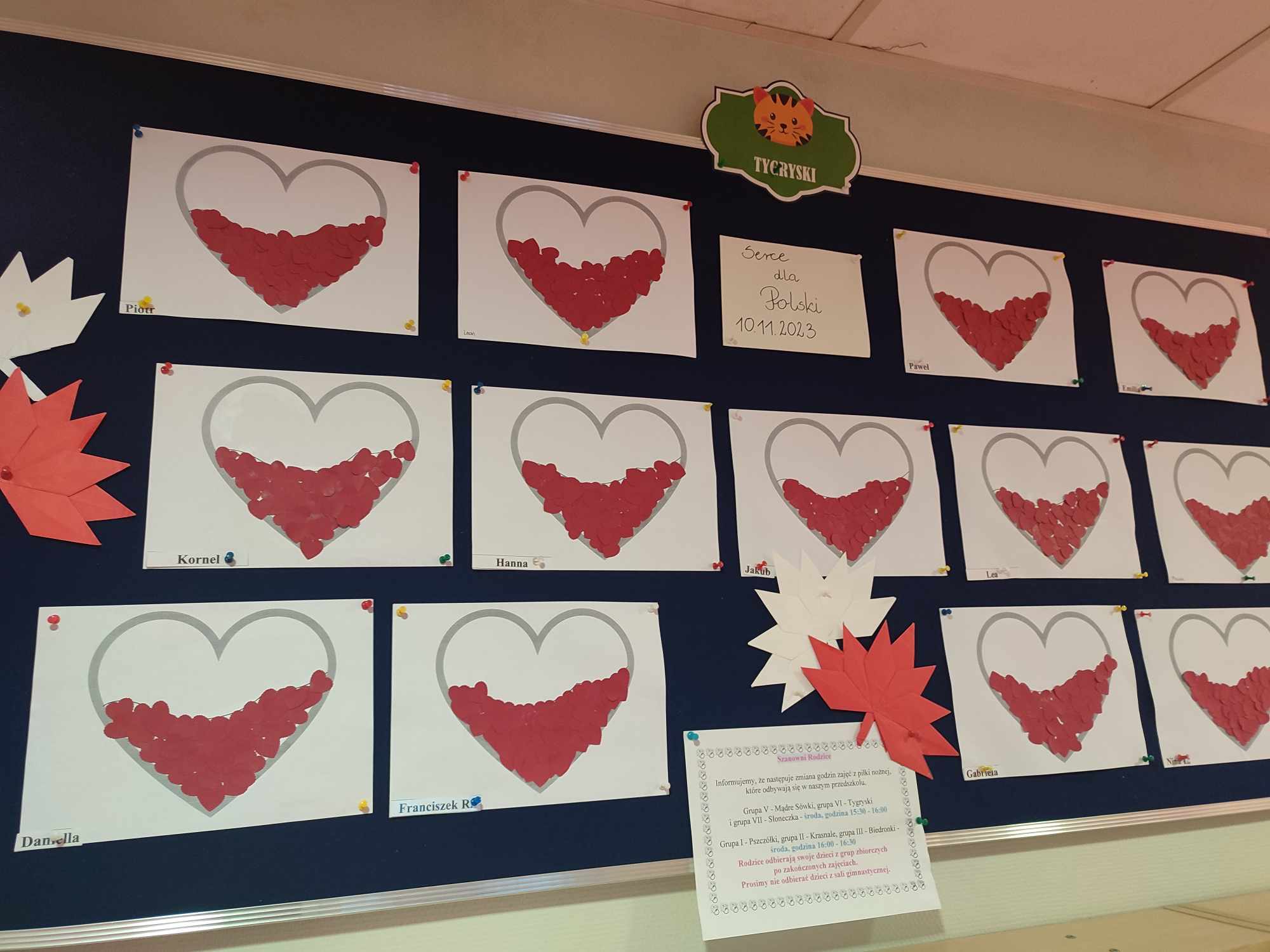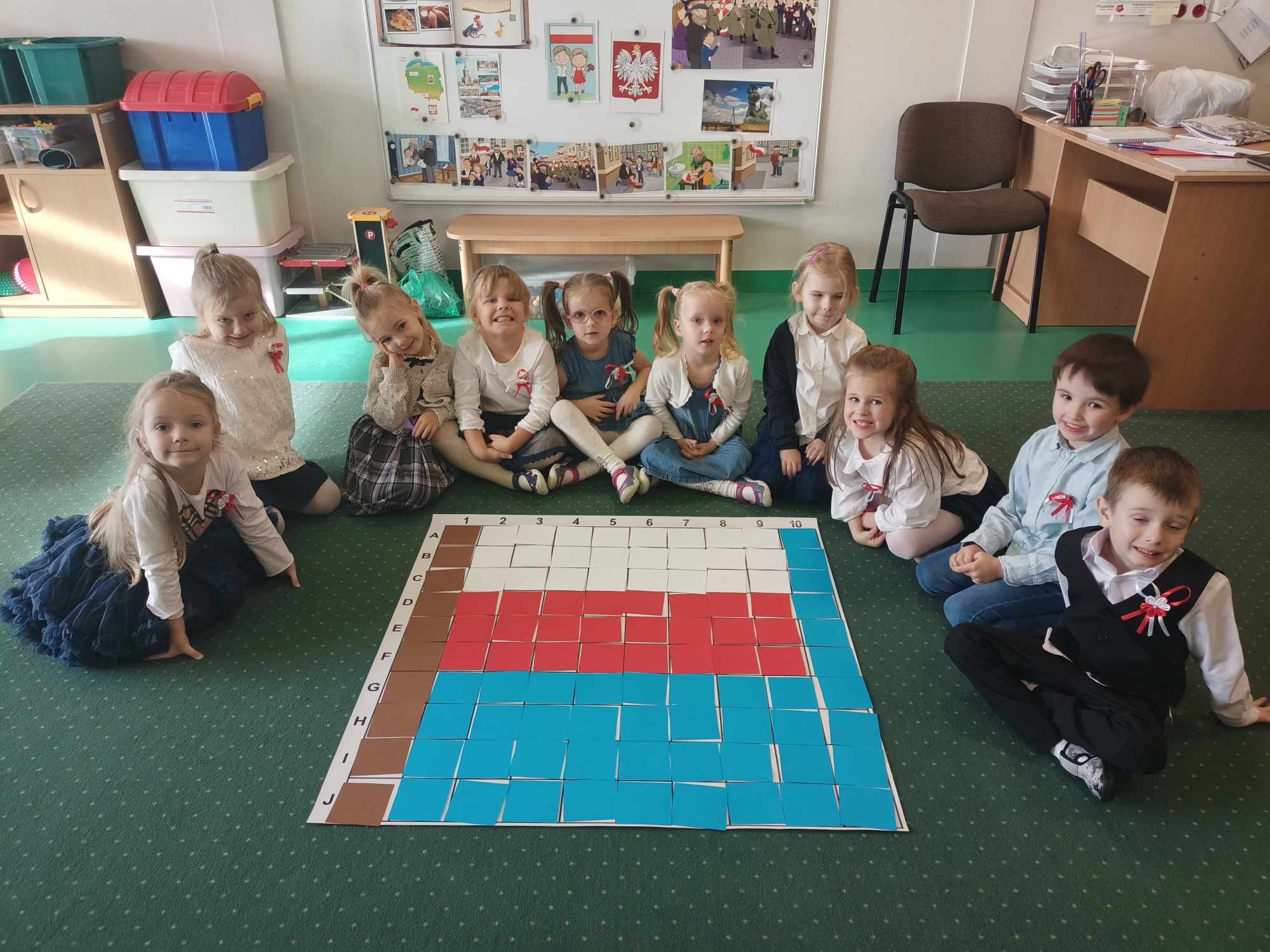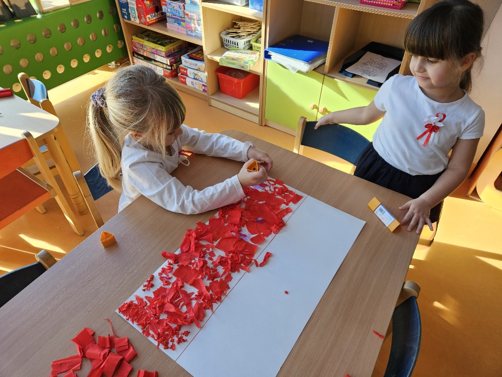 Każda z grup omawiała temat kompleksowy związany z Polską i odzyskaniem Niepodległości, a także wykonała tematyczne prace plastyczne i techniczne. W ramach jednego z zajęć dzieciom z grupy Tygryski przybliżona została postać J. Piłsudskiego. Dzieci obejrzały fimy edukacyjne : Z albumu Dziadka – historia Józefa Piłsudskiego oraz Kasztanka – z cyklu Co by było, gdyby zwierzęta mówiły?, spróbowały ciepłej, mocnej i bardzo słodkiej herbaty jaką pijał Piłsudski. Każde dzieci wykonało również wąsy Marszałka Józefa. W grupie Pszczółki