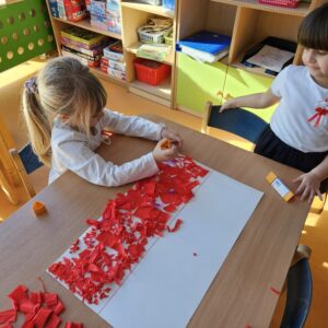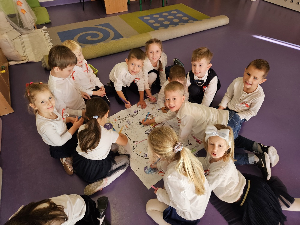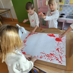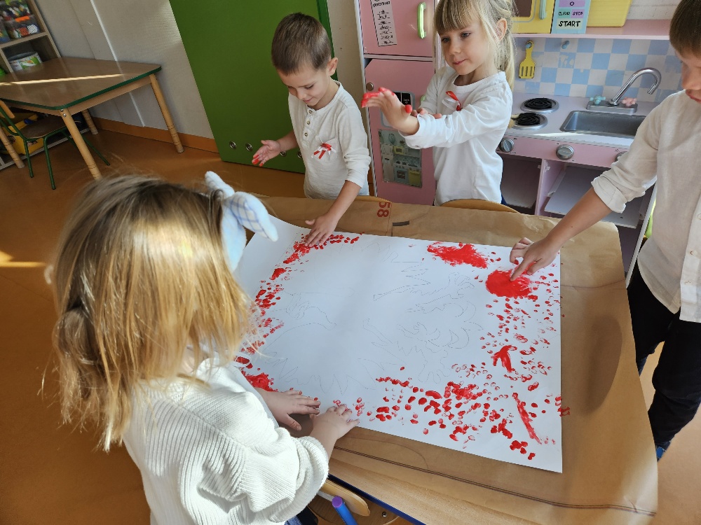 Grupa Mądre Sówki – godło Polski malowane palcami