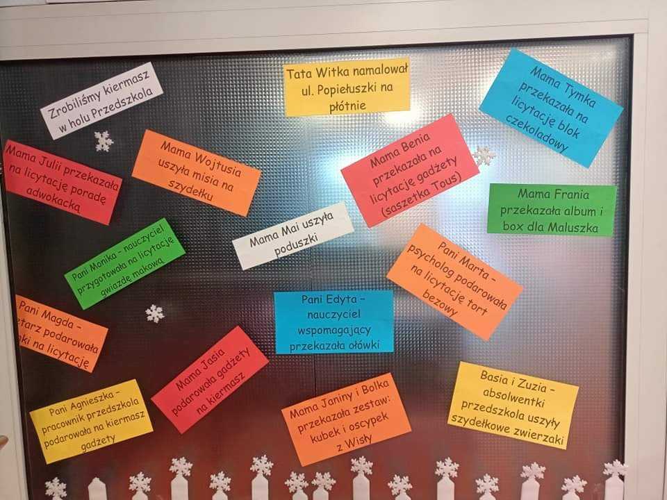 Dzięki wsparciu rodziców naszych przedszkolaków, którzy wzięli udział w licytacjach i kiermaszu,