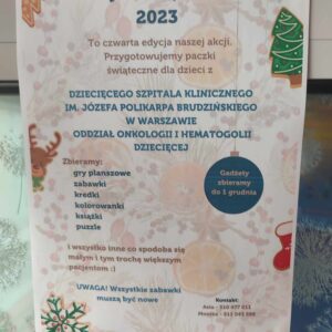 Zbiórka dla Szpitala Klinicznego Post published:19 stycznia, 2024 Post category:Rok szkolny 23/24 Rodzice z naszego Przedszkola zorganizowali zbiórkę artykułów dla oddziału onkologii i hematologii, które zostały w całości przekazane dla Szpitala Dziecięcego w Warszawie. Wszystkim Darczyńcom dziękujemy za udział w akcji. Może ci się spodobać również Wyjście do biblioteki 3 lutego, 2024 Bal karnawałowy 22 stycznia, 2024 Pasowanie na Żaczka Przedszkolaczka 19 stycznia, 2024